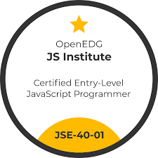 – تُعد واحدة من الشهادات المُعترف بها عالمياً والمُقدمة من منظمة البرمجة الوطنية (NCE)، وتُعنى باختبار مستوى المعرفة والمهارات الأساسية في لغة البرمجة JavaScript. تهدف الشهادة إلى توفير تصديق مهني لحملتها في مجال تطوير الويب وتطبيقات الهواتف المحمولة باستخدام جافا سكريبت.